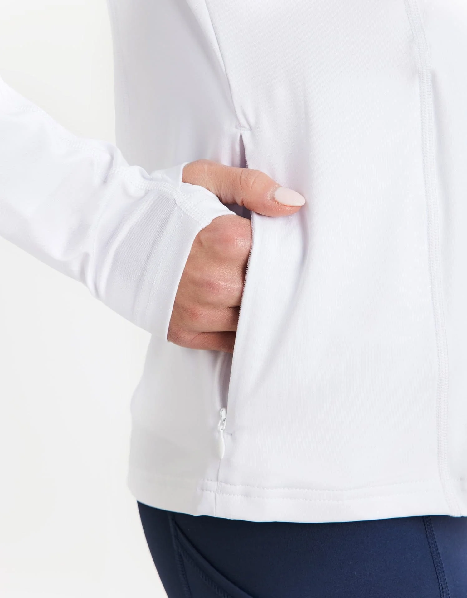 Discover the UPF 50+ Summer Essential Jacket with neck coverage, long sleeves, thumbholes, breathable fabric, and zip pockets. Lightweight and anti-odor, it provides reliable protection during active days in the sun.